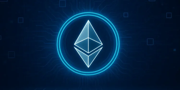 Ethereum logo glowing in a digital network environment